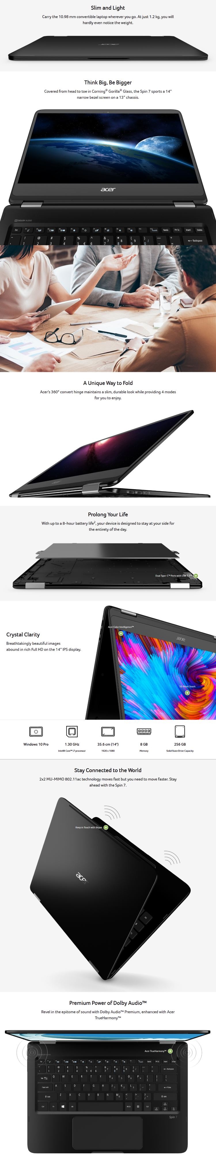 Product details of Acer Spin 7 (SP714-51-M1S8) - 14"/i7-7Y75/8GB/256GB SSD/W10 Pro Laptop (Black)
