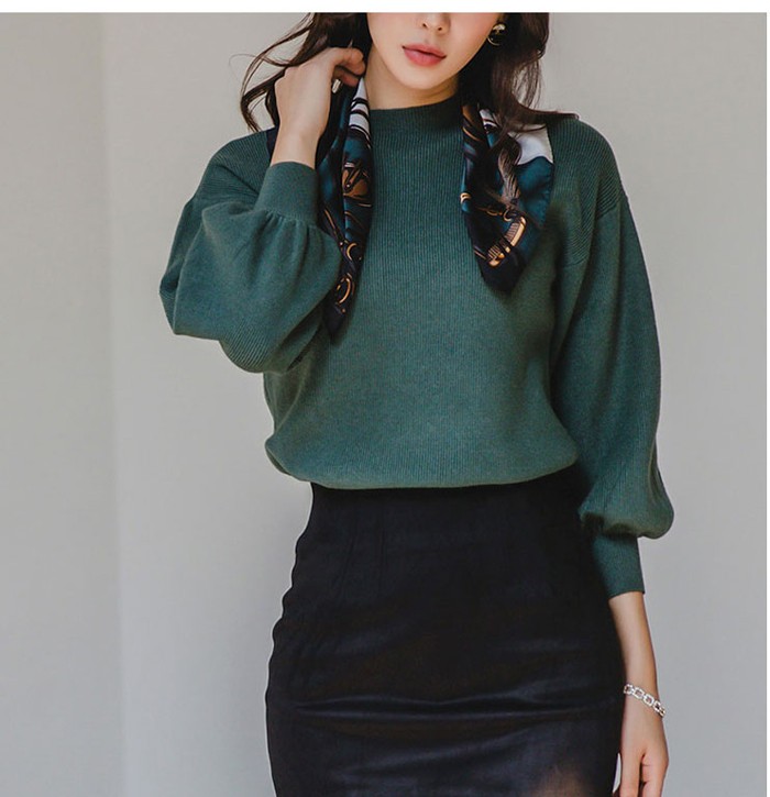 商品名:ニット トップス バルーン袖 無地