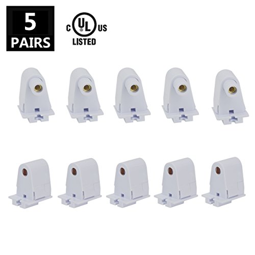 JESLED 5 Pairs T8/T10/T12 Single Pin FA8 Holder Socket Tombstone for 8ft LED Fluorescent Tube Light Replacement Flameresistant Plunger Lampholder UL Listed