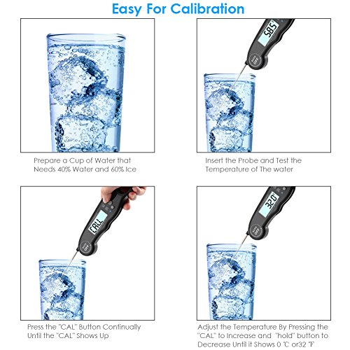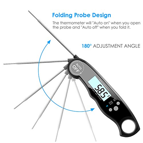 - EASY TO USE: GDEALER Digital thermometer with foldable 4.6" food grade stainless steel probe and auto-on/off function,open the probe to turn on,fold the probe to turn off, easy to use,storage and carry.You can also calibrate the kitchen thermometer and know the Max and Min temperature when cooking.
