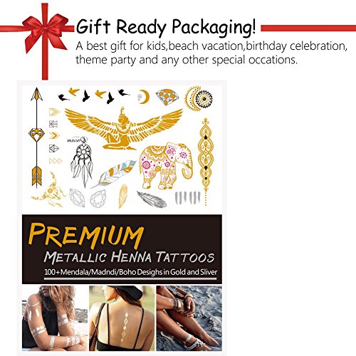 - OVER 100+ new & stunning designs that match the vibrant images shown,our stickers are perfect for girls, teens and women of all ages to get noticed wherever you are.premiun quality metallic temporary tattoos will last several days and keep its flash & glitter look. never mind, they’re waterproof and sweat proof. will last if you swim all day or dance all night.