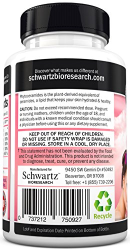 -. Feature : Doctor Formulated Effective Anti-Aging Formula: Our Phytoceramides is the best on the market. Our Phytoceramides 350 mg Supplement reduces fine lines, eliminates wrinkles and crow's feet and promotes smooth, supple skin in less than 3 weeks. Our Phytoceramides 350 mg plant derived is fortified with Vitamins A, C, D, and E for powerful results designed to work. / 100% Safe and Natural Proven Ingredients: Schwartz Bioresearch is a leading brand in 100% natural, professional grade dietary supplements. Proudly manufactured in the USA, with strict adherence to Good Manufacturing Practices (GMP). All batches are 3rd party tested to guarantee the purity and quality of the ingredients with no fillers, no binders and no artificial ingredients. Dermatologist approved. / Customers Say our Superior Phytoceramides are Great for: Hair Growth, Skin Restoration, Skin Rejuvenation, Dry Skin, Shiny Silky Hair, Anti-Aging, Reduction of Facial Wrinkles, Fast Hair Growth, Increased Collagen Production, Improve Skin Tone, Reducing Fine Lines, Wrinkles and Crow's Feet, Reversing Sun Damage, Strong Healthy Nails, Fading Sun Spots, Dark Circles, Saving Money On Expensive Moisturizers / Excellent Results in About 2 Weeks: No more dark circles, no more old age spots, just naturally radiant skin- fast. Get the skin care Japanese women have with Schwartz Bioresearch Natural Anti-aging phytoceramides. Better than Ceramide-PCD 40 mg our skin hair nails all-natural formula makes it possible. As seen in Dr. Oz, this vitamins for hair growth are going to hydrate and moisturize your skin. / Long Lasting Results from the Inside Out: With phytoceramides 350 mg you will start seeing results within the first 20 days. This hair skin nails supplement has phytoceramides plus biotin 5000 mcg and is gluten free.