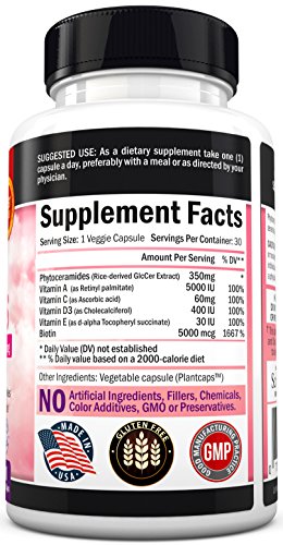 -. Title : Phytoceramides 350 mg with Biotin 5000 - Gluten Free Powerful Anti-Aging Skin Care Vitamins and Skin Rejuvenation. Plant Derived - Formulated by Doctors - Works for Hair Skin and Nails