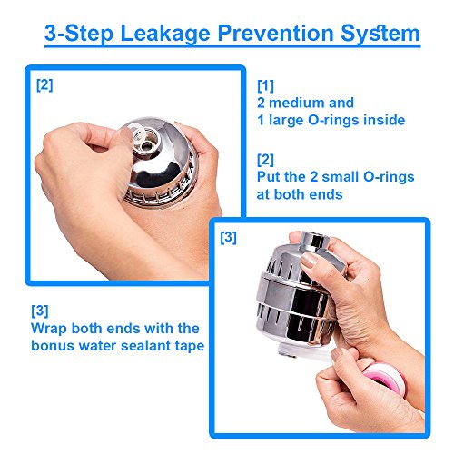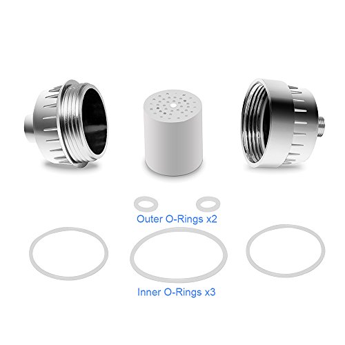 - REPLACEABLE FILTER & EASY INSTALLATION & 30-DAY MONEY BACK GUARANTEE (limit 2 per household/buyer) -- ** Contain a removable filter cartridge, which should be changed about every six months (or after 10,000 gallons of water use. Depending on actual water condition). ** Universal 1/2" connectors work with all standard shower types, including fixed, rain and handheld showers. ** Comes with a FREE sealant tape.