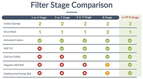 U-PY SPA 8-Stage Shower Filter with Replaceable Universal Filter Cartridge, Removing Chlorine and Heavy Metals. High Output. Gentle to Skin and Hair.