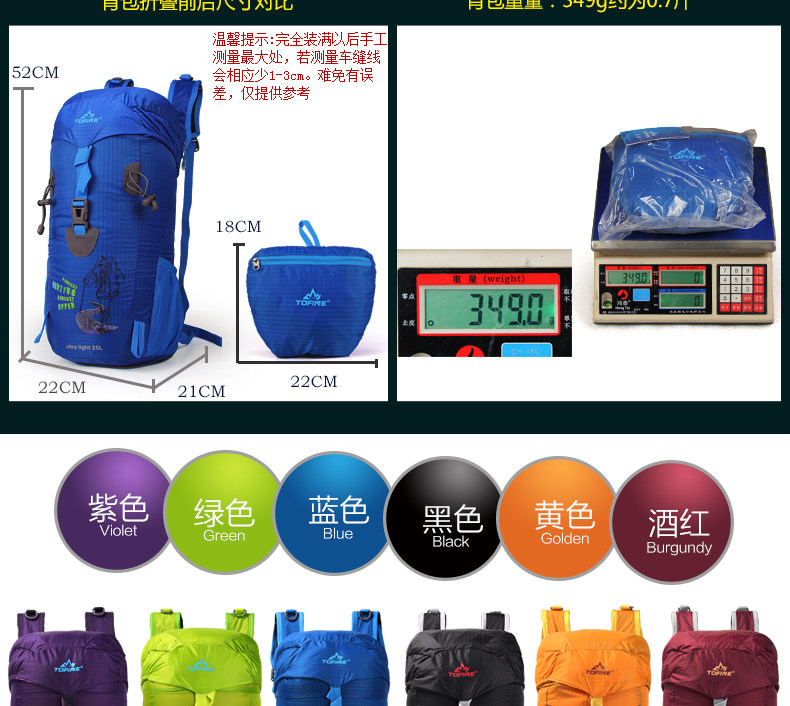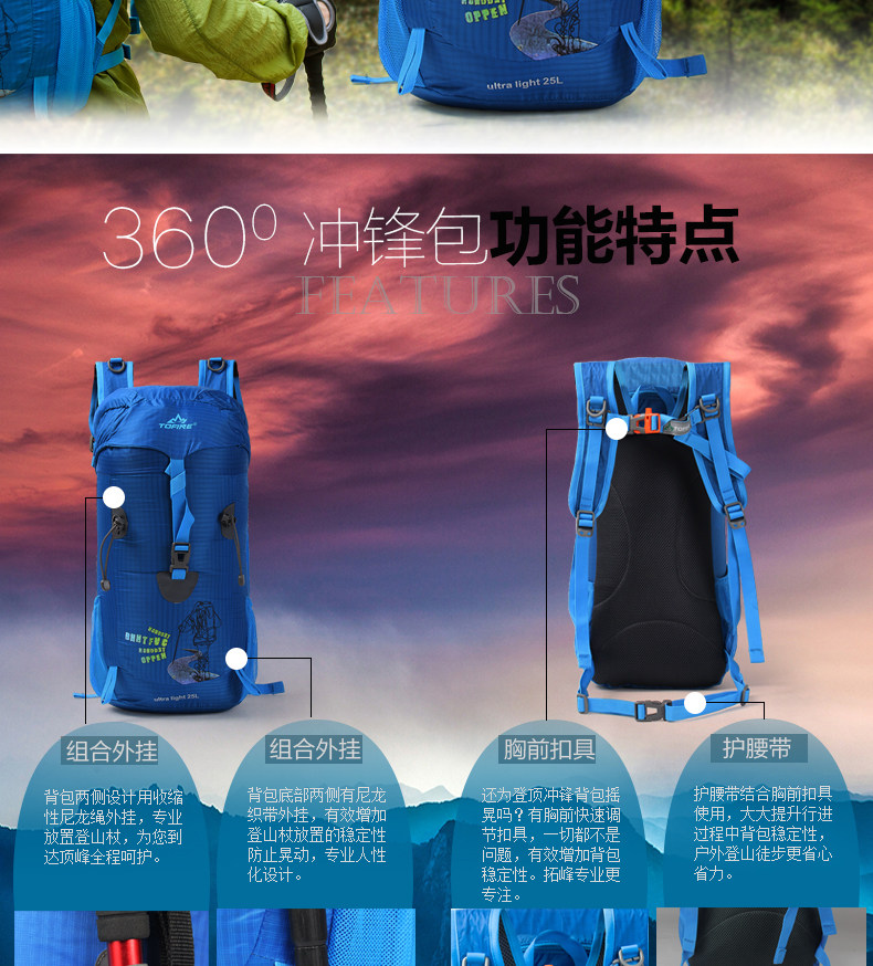 可折叠双肩包登山徒步冲锋冲顶包超轻户外背包旅行女男防水