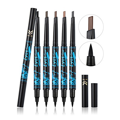 CCbeauty 2-in-1 Eyebrow Pencil Waterproof with Black Gel Liquid Eyeliner Pen Makeup Eyebrow Coloring Kit Set (Set of 5 Colors)