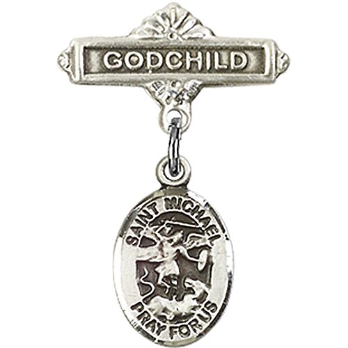 -. Title : Sterling Silver Baby Badge with St. Michael the Archangel Charm and Godchild Badge Pin 1 X 5/8 inches