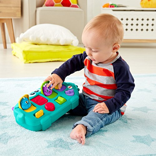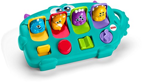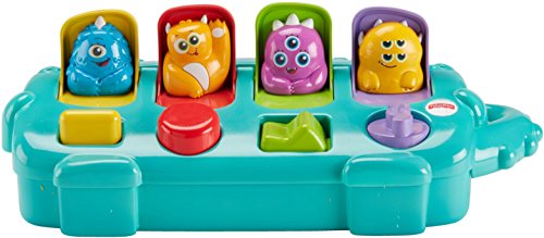 -. Feature : SurP.R.Ise doors and monster eyes introduce numbers 1-4 / 4 ways to make the monsters pop-up: Slide the lever, push the button, toggle the switch or turn the knob / Silly monster faces, bright colors and fun sounds keep your baby's senses excited and engaged / Your baby is strengthening dexterity with every slide, push, toggle or turn / As babies discover all the ways to make the monsters pop up, they're introduced to cause and effect
