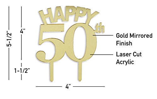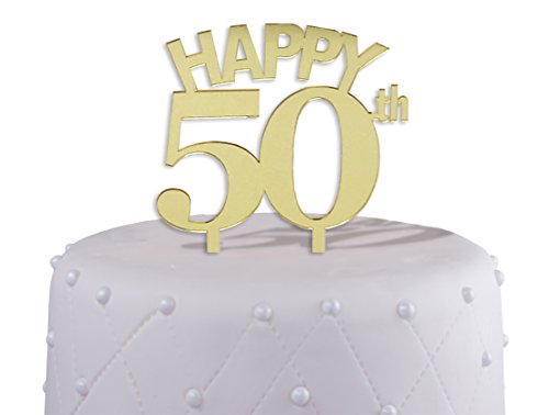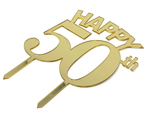 50 AND THRIVING: Make the 50th celebration even more special with this beautiful Gold Mirror acrylic ‘Happy 50th’ cake topper. This is a decoration that accents any theme and looks stunning in photos. Take your birthday cake to the next level! Written in uppercase letters, it instantly elevates even the most decadent desserts.