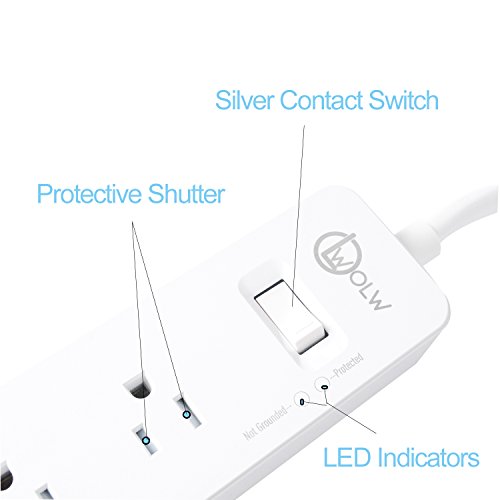 PROTECTIVE SHUTTER: 1700J Surge Protector Power Bar. Protect the children from electric shock and prevent dust.Adoption of fire proofing high-quality pc plastic material makes it fireproof up to 850℃.