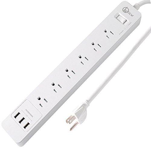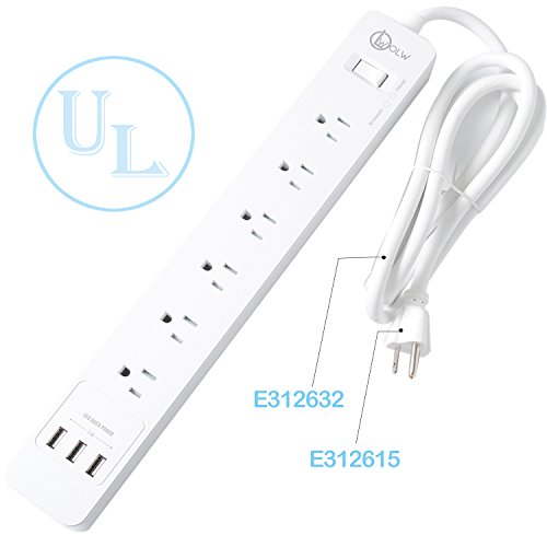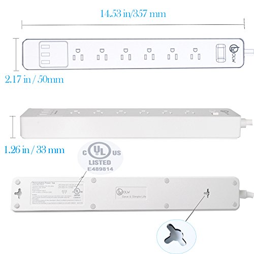 OOLLWW Surge Protector UL Listed 6-Outlet Wall Mountable Commercial Power Strip (15A 125V) 1700 Joules 4.9 Ft Power Cord with USB Smart Charger 3 Charging Ports for Home Office White