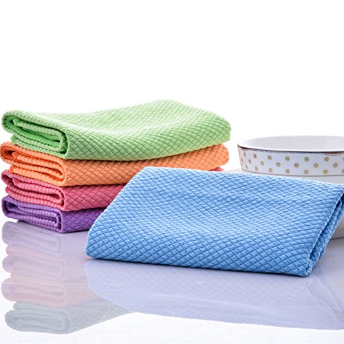 TraderPlus Microfiber Dust Cloths Cleaning Towel - Dish Washcloth, Absorbent Soft Towels Fits for Kitchen/ Car/ Windows Cleaning Car Care 5 color assorted 12"x16"