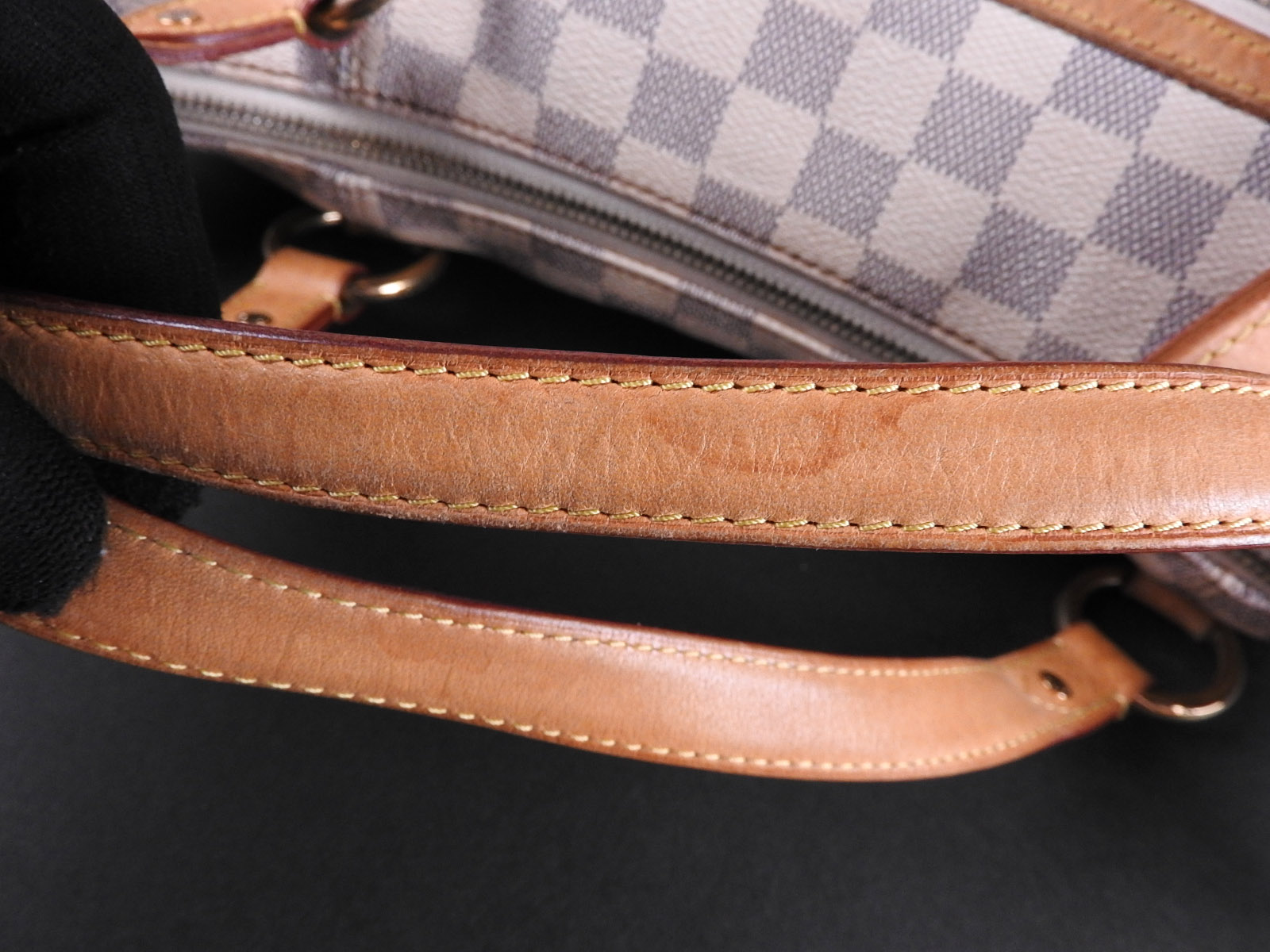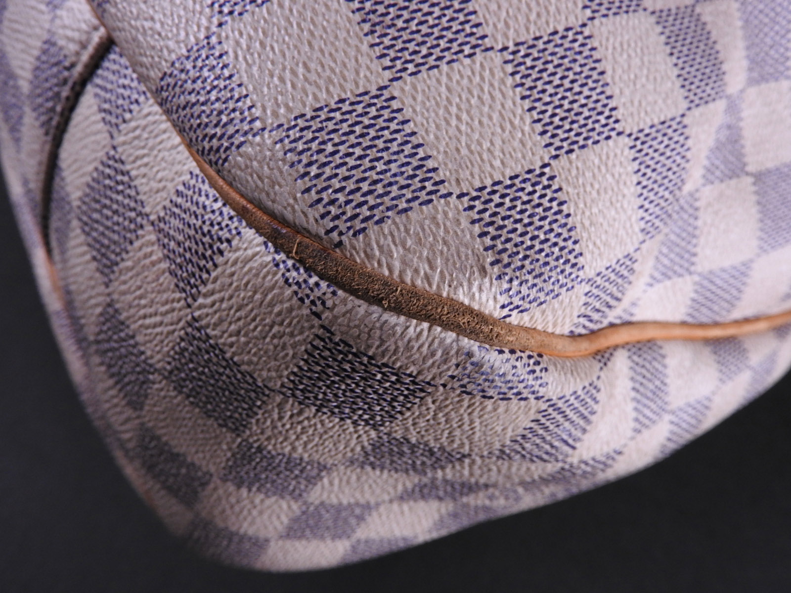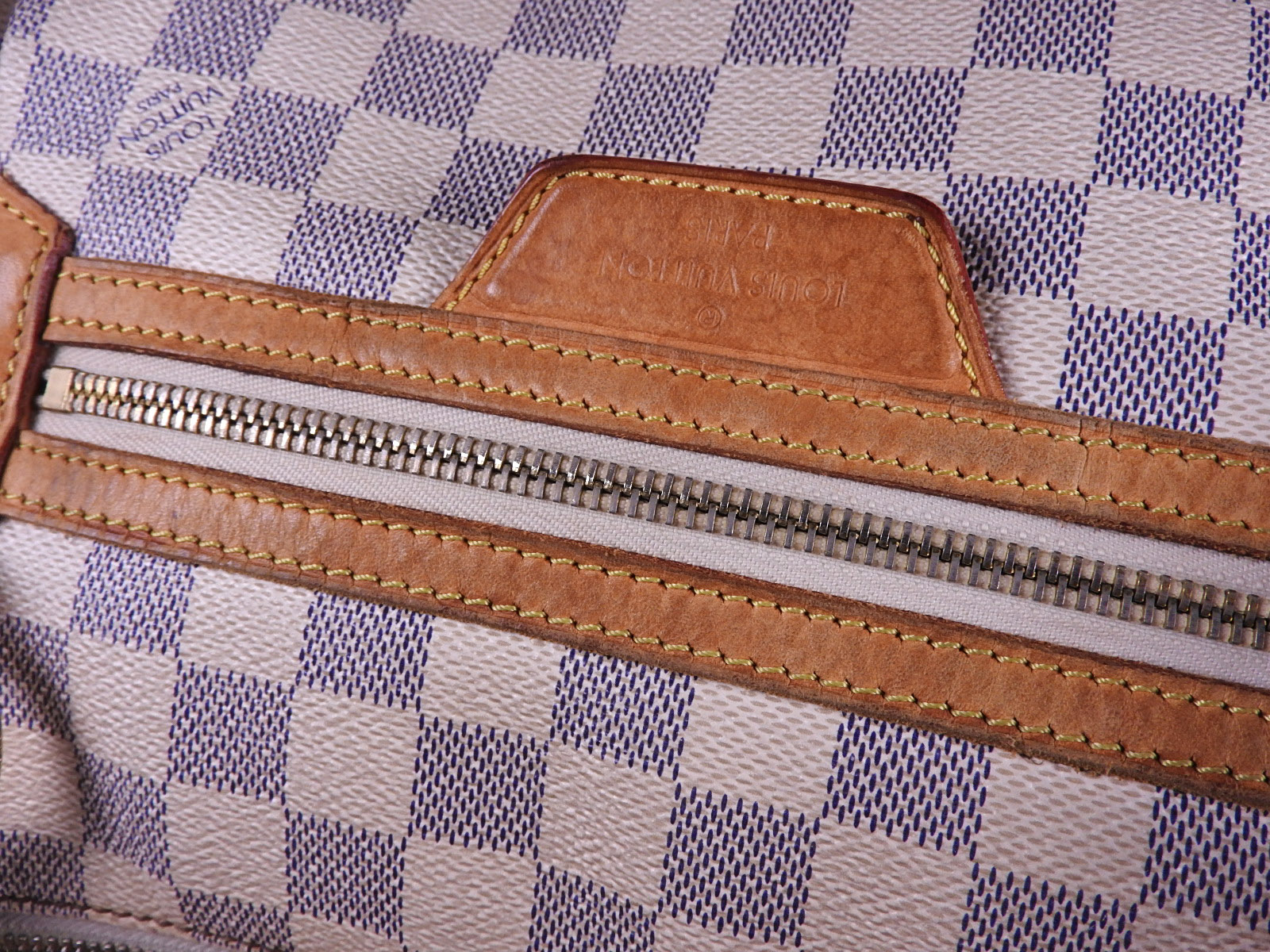 Damier azur: Used feeling. Some stains and fading. Leather: Used feeling. Some scratches, stains, abrasions and tanning. |