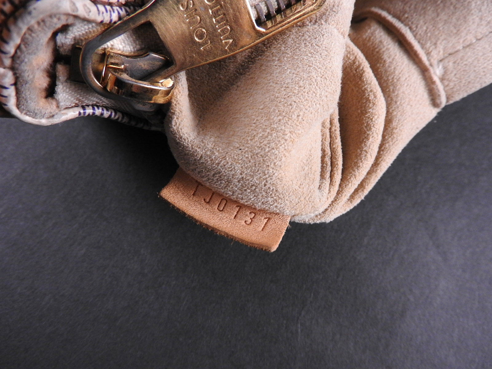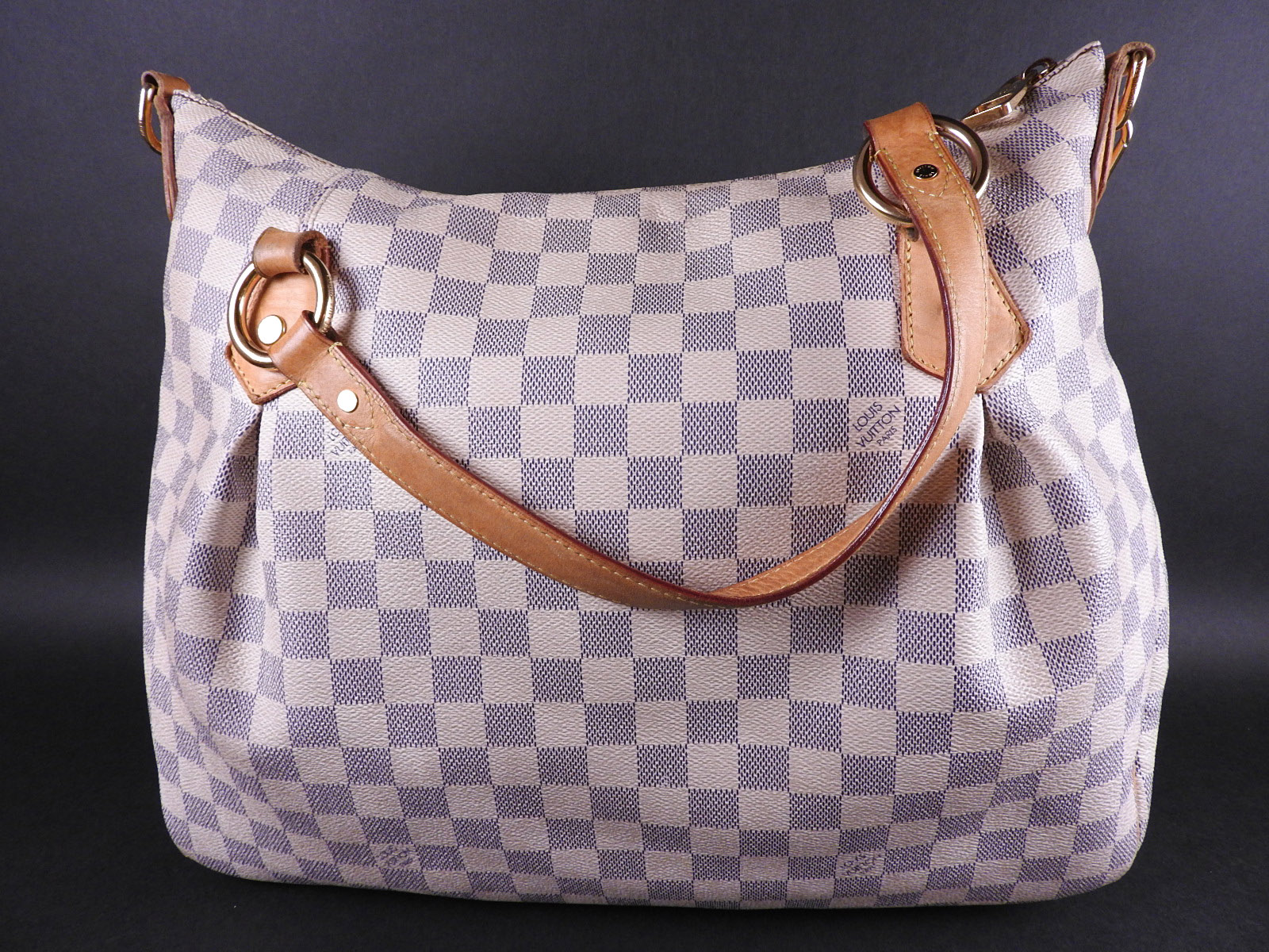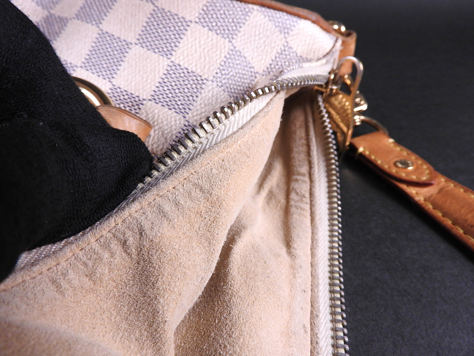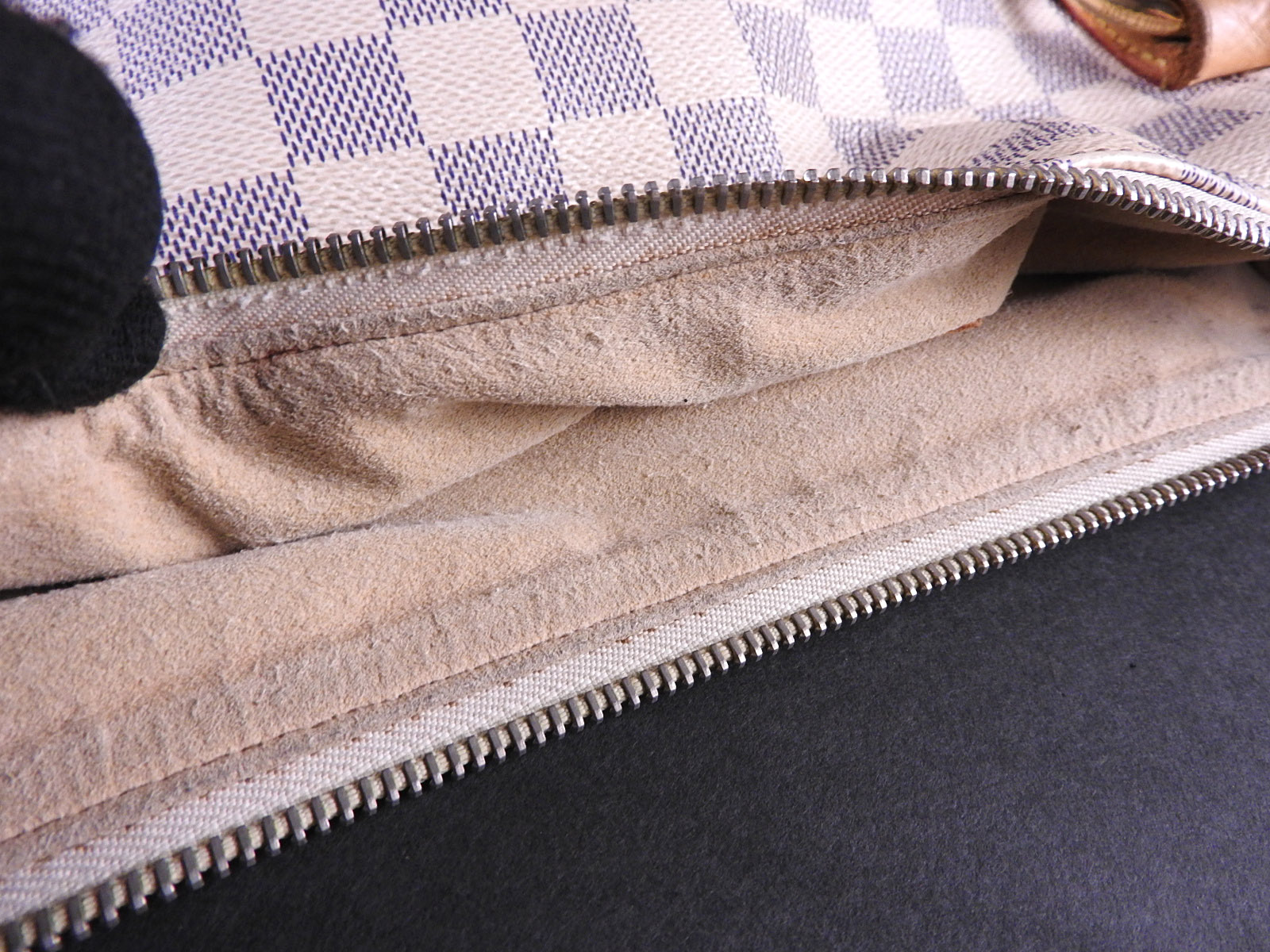 Damier azur: Used feeling. Some stains and fading. Leather: Used feeling. Some scratches, stains, abrasions and tanning. |