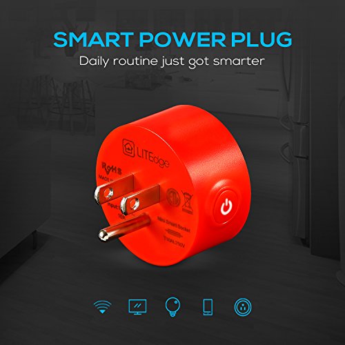 LITEdge Smart Plug, Works with Amazon Alexa, Wi-Fi Accessible Power Outlet, No Hub Needed, Control with App on Phone, Single Socket, More Cool Red Finish