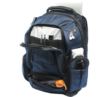 -. Feature : Padded laptop compartment / Full-body main compartment / Supports 17 laptop / Tablet sleeve / Multiple external zipper compartments