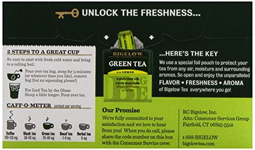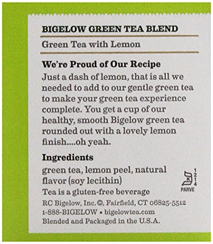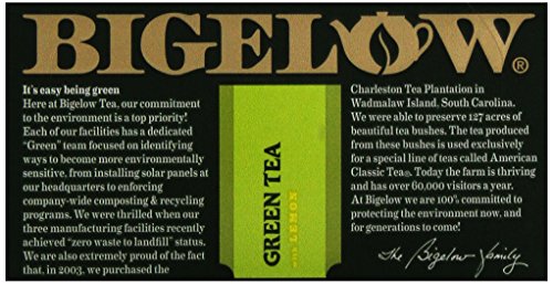 -. Title : Bigelow Green Tea w/ Lemon Tea Bags - 20 ct