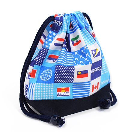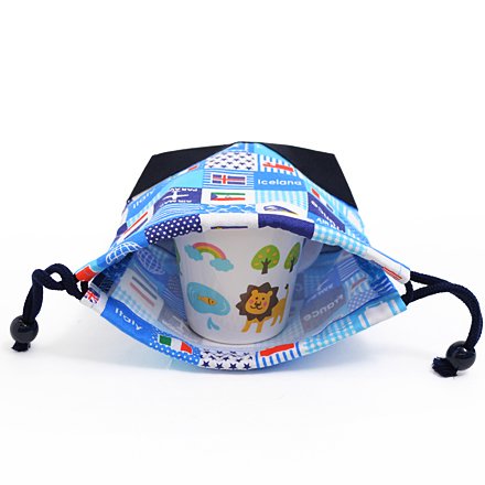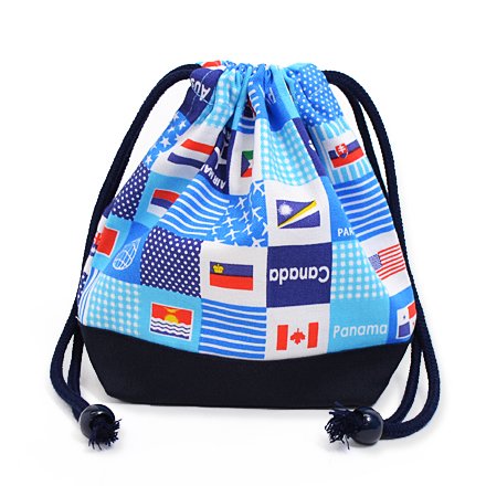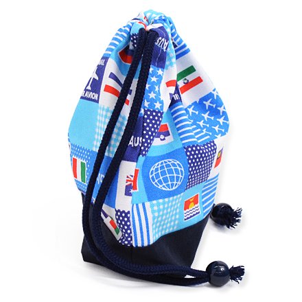 World Travel travel drawstring Gokigen lunch (small size) with gusset bag cup national flag (Sky Blue) x Ox navy blue made in Japan N3565000 (japan import)
