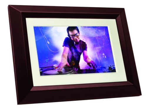 -. Feature : 7" LCD Panel / Brown Wood Frame / Automatic landscape/portrait recognition employs a sensor that recognizes PhotoFrame orientation and displays each photo in its proper mode / Select transition effects such as Shuffle mode and slideshow interval between photos.