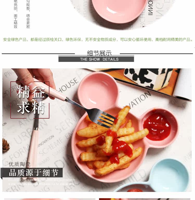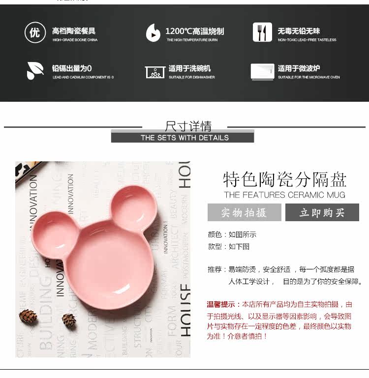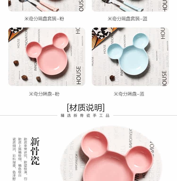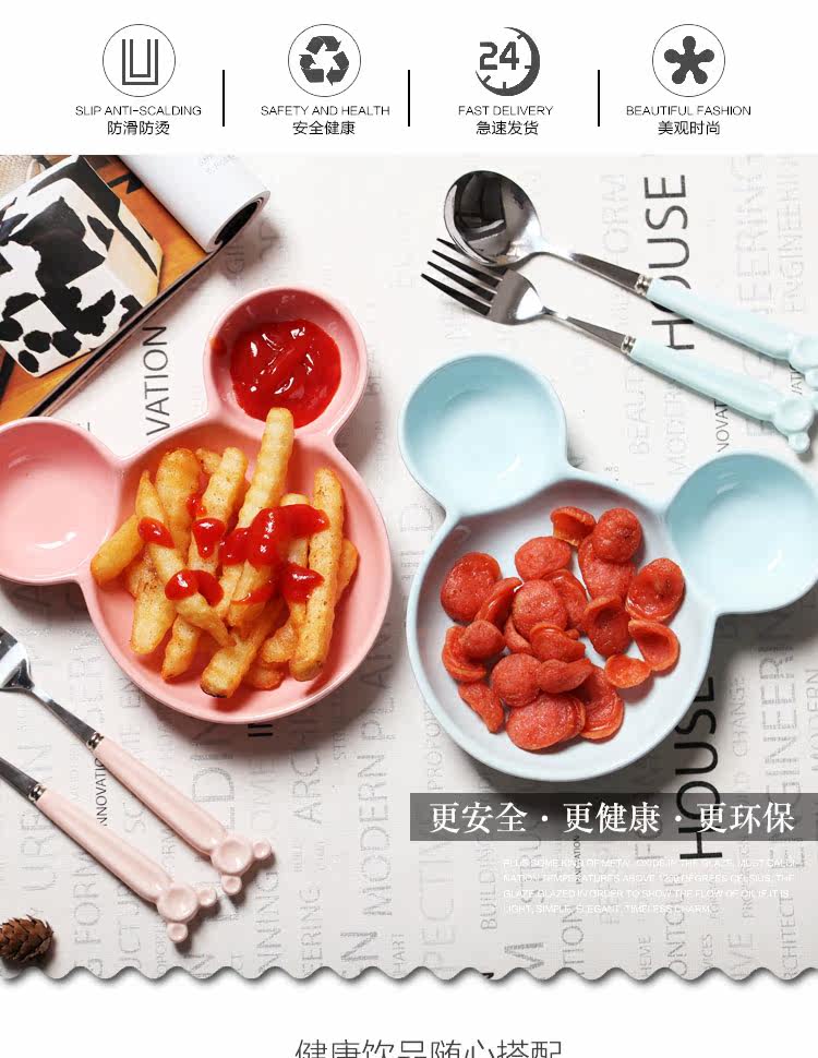 简约创意陶瓷分格盘卡通可爱早餐盘子快餐西餐盘儿童家用学生饭盘