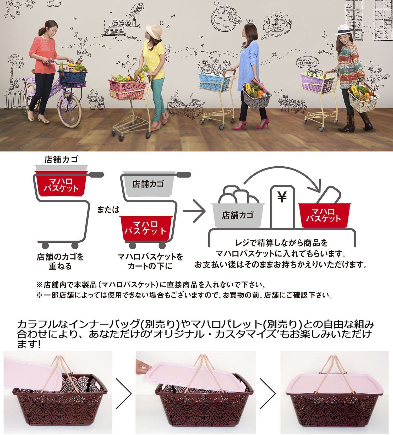 Moreover, it is a point that you can enjoy your favorite color variation in combination with 7 color inner bag (sold separately) fitting perfectly in the basket with beads at the four corners!