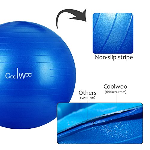 Studio : Coolwoo Publisher : Coolwoo Binding : Misc. Product Description With quality PVC, Coolwoo exercise ball is best in anti-burst and smell free. A Coolwoo yoga ball could support 660lbs without any problem. Even over load or break accidentaly, the ball would never burst suddenly. It will deflate gently. The texture design on the surface make it stable when you doing exercise. Do not worry that the ball would go away. 0