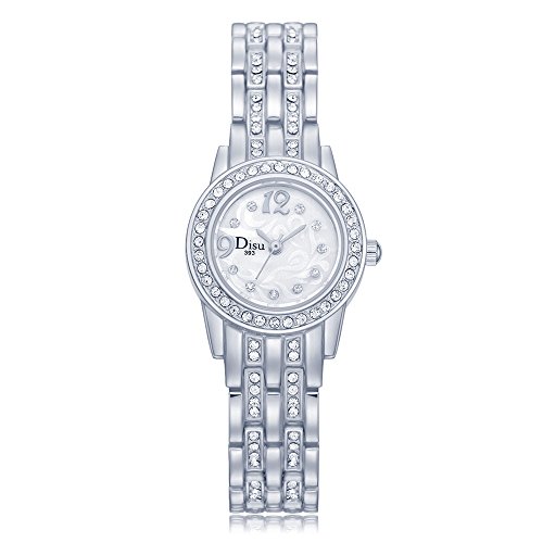-. Binding : Watch -. Brand : DISU -. Department : Womens -. Feature : FASHION AND LUXURY DESIGN: Metal plating zinc case featuring crafted diamonds and textured dial. Dainty watch but easily readable. / EASY AND COMFORTABLE TO WEAR: Two link crystal accented bracelet finishing with jewelry clasp. Removable links. Fit maximum 7.5'' wrist. / GREAT GIFT: Reasonable P.R.Ice for a simple gift. Perfect for all kinds of casual, indoor activities and daily use. Great gift for lady, mother, girlfriend and wife. / HIGH QUALITY: Durable mineral window protects from scratches. Quartz movement provides accurate time-keeping. Battery included. / RELIABLE WARRANTY: 30 Days money back for any reason, 3 months replacement or refund for quality issues. We are striving to offer you best service. Feel free to contact us. -. Label : CX-Electronic Commerce -. Manufacturer : CX-Electronic Commerce -. MPN : 2017DS025 -. PartNumber : 2017DS025 -. ProductGroup : Watch -. ProductTypeName : WATCH -. Publisher : CX-Electronic Commerce -. Studio : CX-Electronic Commerce -. Title : DISU Luxury Diamond Women Watches Fashion Casual Crystal Bracelet Watch Arabic Analog DS025