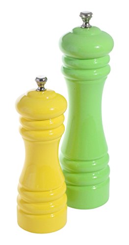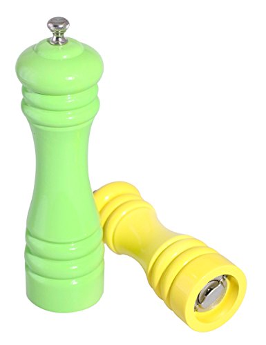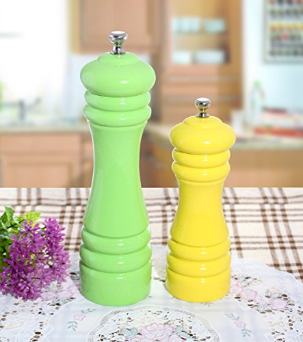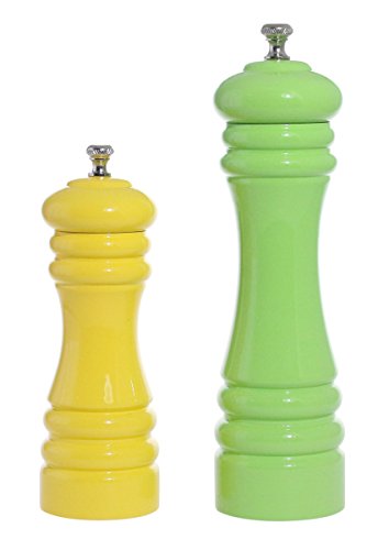 Elegant Rubber Wood Pepper Grinder / Mill- Set of 2- Different Sizes in Green and Yellow
