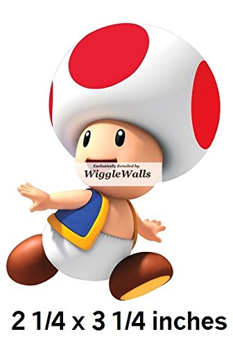 -. Binding : Kitchen -. Brand : WiggleWalls -. Color : Multi Color -. EAN : 0787392259741 -. Feature : Fast, Fun and Easy Home Decorating / Repositionable Peel and Self Stick Vinyl Wall Decal / Great for party decorations and gifts / Genuine Licensed Product with FAST Shipping in USA / It is Red Toad! -. IsAutographed : 0 -. Label : WiggleWigal LC -. Manufacturer : WiggleWigal LC -. Model : SPMRO06 -. PackageQuantity : 1 -. ProductGroup : Home -. ProductTypeName : HOME -. Publisher : WiggleWigal LC -. Size : 2 1/4 by 3 1/4 inches -. Studio : WiggleWigal LC -. Title : 3 Inch Red Toad Super Mario Removable Wall Decal Sticker Art Nintendo 64 SNES Home Kids Room Decor Decoration - 2 1/4 by 3 1/4 inches -. UPC : 787392259741