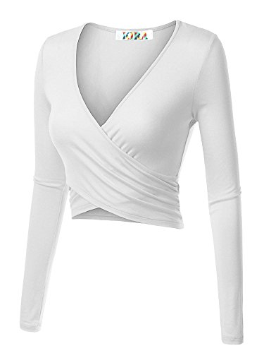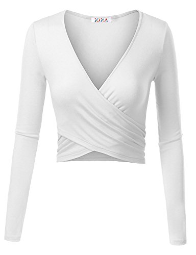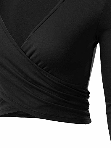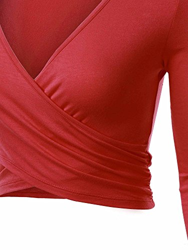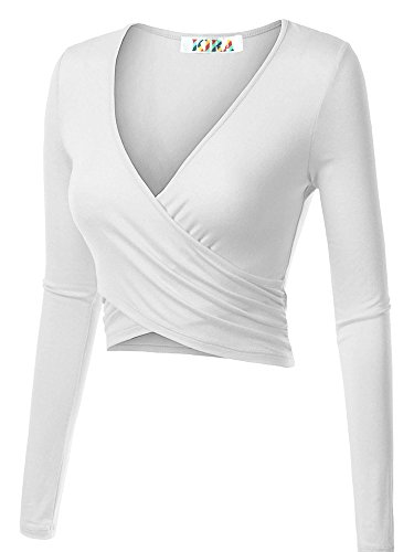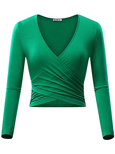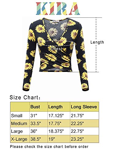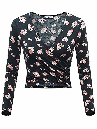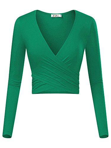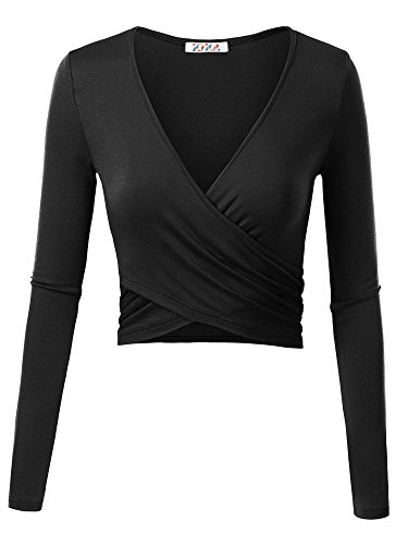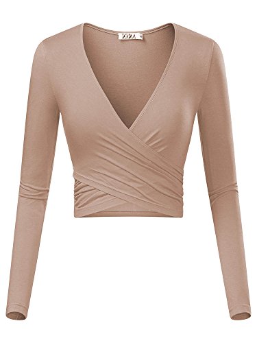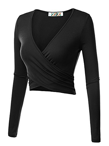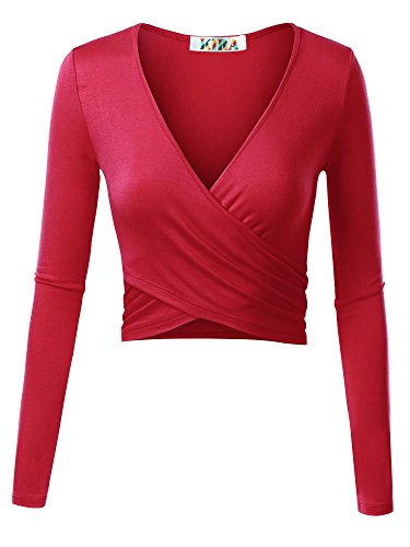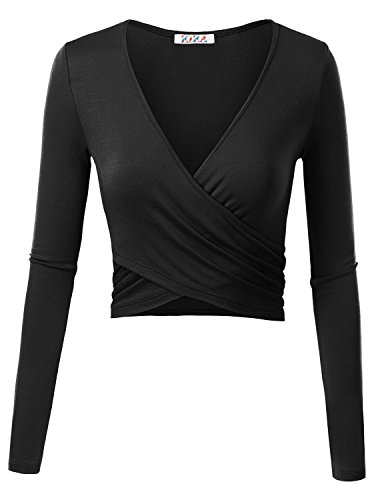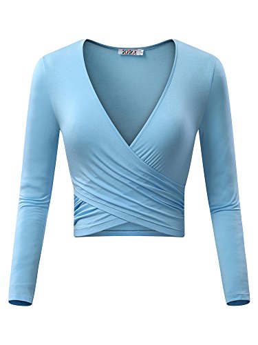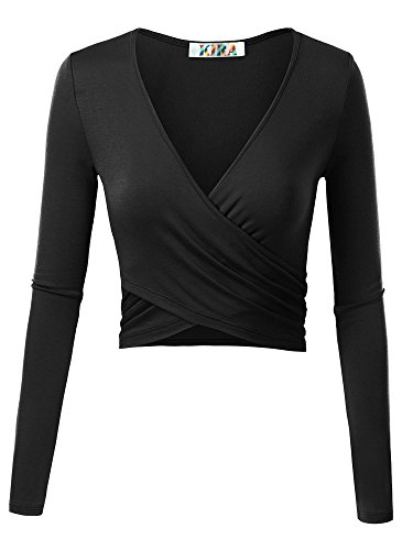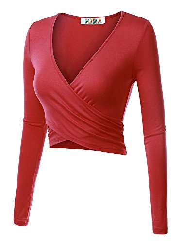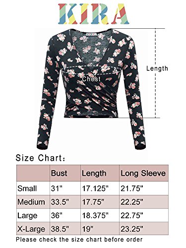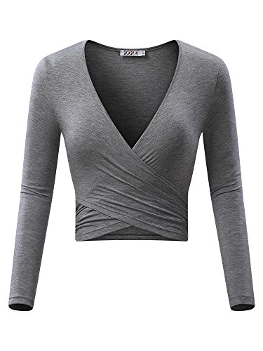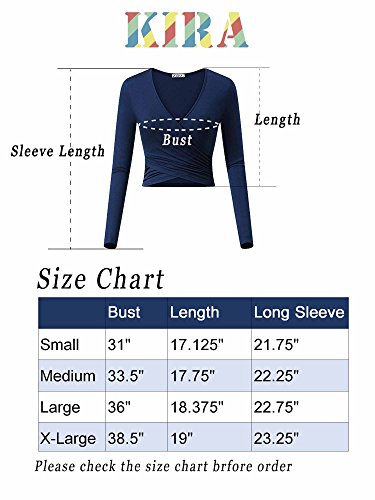 | KIRA Women's Deep V Neck Long Sleeve Unique Cross Wrap Slim Fit Crop Tops |