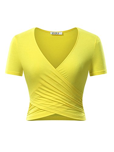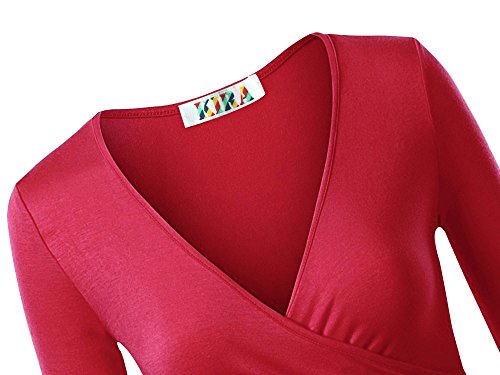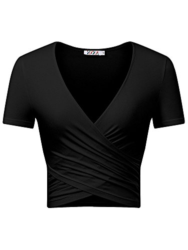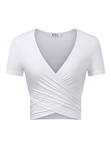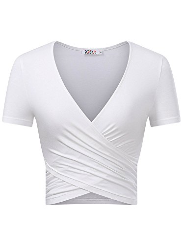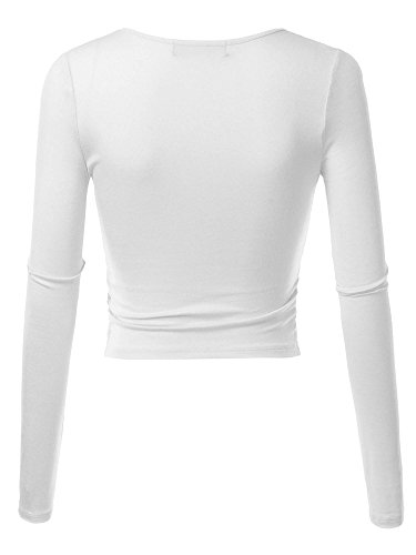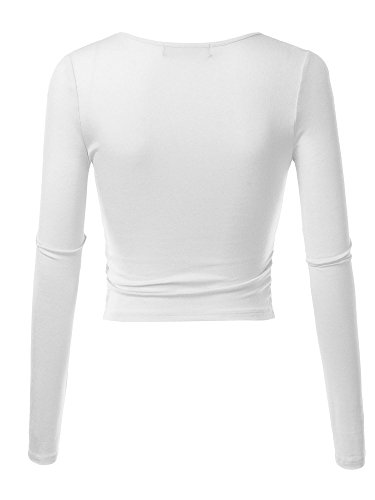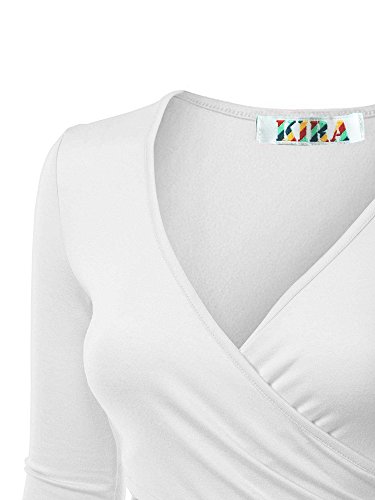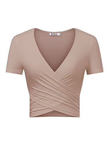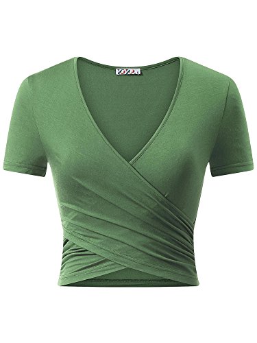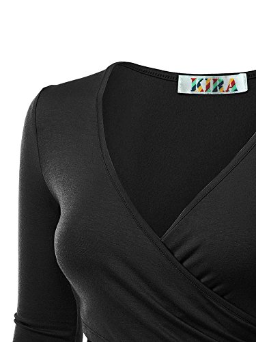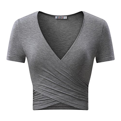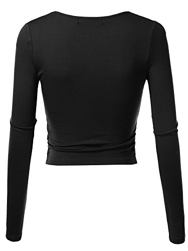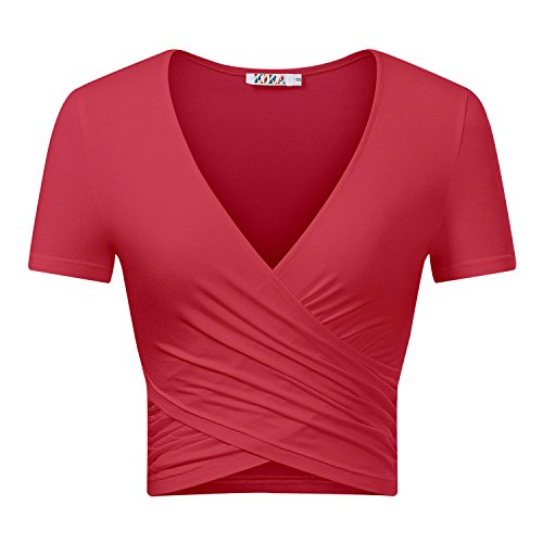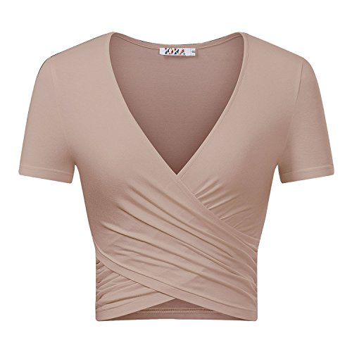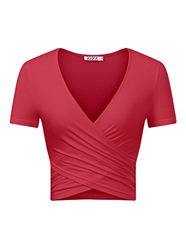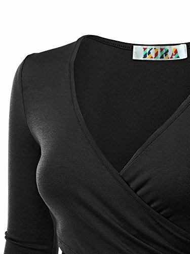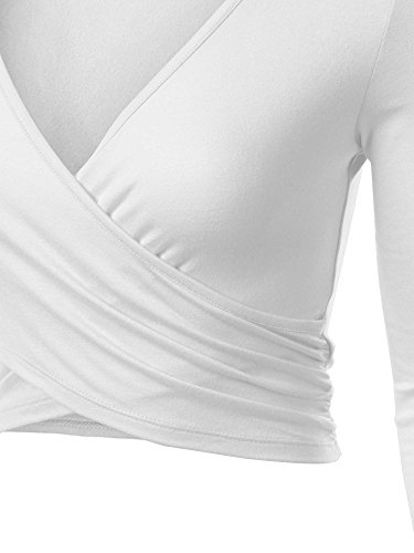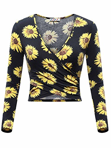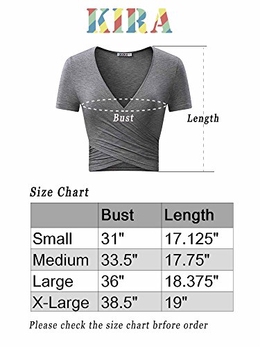 | KIRA Women's Deep V Neck Long Sleeve Unique Cross Wrap Slim Fit Crop Tops |