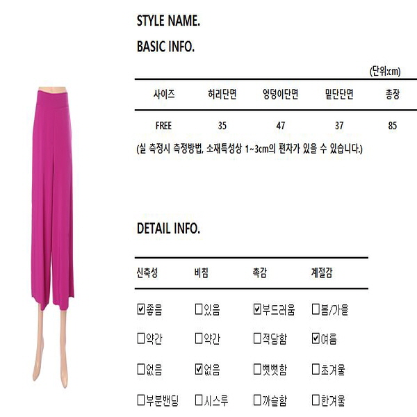 하늘하늘 시원한 원단으로 한여름까지 착용가능하며 허리부분 밴딩처리로 더욱 편안합니다