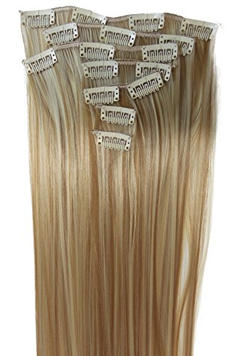 PRETTYSHOP XL SET 7pcs Full Head 24" Clip In Hair Extensions Hairpiece straight Heat-Resisting (blonde with highlights straight 27H613 CE14)