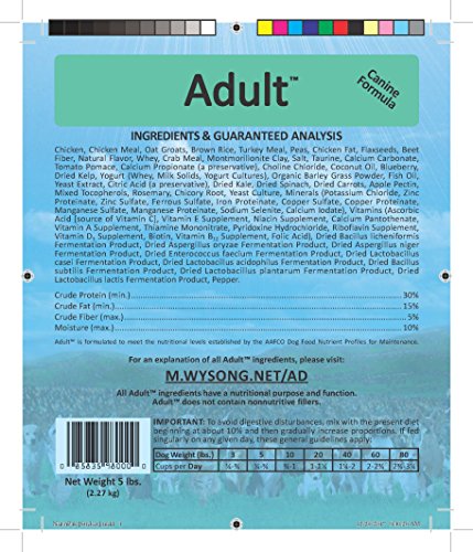 No canine adult diet on the market has proven itself like Wysong Adult (formerly Maintenance). It is created by a veterinarian and owes its popularity solely to veterinary recommendation and word of mouth. Adult has been fed to tens of thousands of canines through multiple generations for over thirty years with remarkable results. This improved formulation is designed to take advantage of new processing methods to preserve natural value, and nutritional advances in epigenetics and nutrigenomics. Adult is higher in meats, organs, protein, and fat, and contains a comprehensive spectrum and higher levels of micronutrients/nutraceuticals including prebiotics, probiotics, enzymes, omega-3s, antioxidants and more. Small quantities of fruits and vegetables mimic what may be consumed in the viscera of prey, and contribute important vitamins, minerals, antioxidants and other nutrients. For best results, rotate Adult with fresh foods and Wysong TNT raw dog foods, as well as Wysong canned dog food diets.Feature