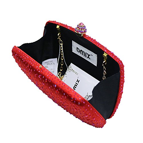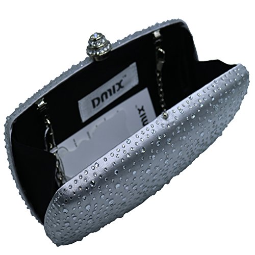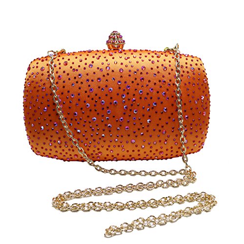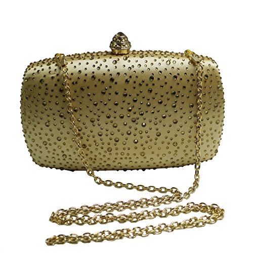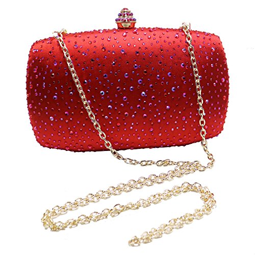 Specifications: *Product dimensions: 6.3 (L) x 3.7 (H) x 1.8 (W) inches *Product weight: 1.1 pounds *Closure: Crystal clasp fastening *Shoulder strap: One detachable should chain inside *Fashion element: Sparkel diamonds *Workmanship: Handmade *Materials: Fine A grade crystal diamond and metal hardware, 100% polyster fine satin linning *Packaging: comes with a gift box *Ideal for holding essentials like keys, ID, lipstick and a cell phone. *Perfect for weekend, wedding, evening party, prom or a night out.