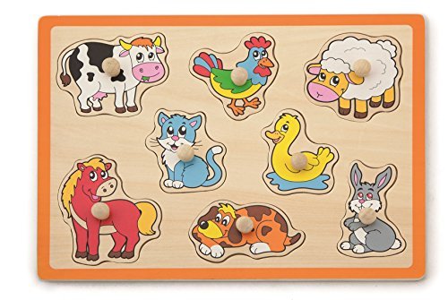 (Superb Choice)/Puzzles/Pegged/DIRECT FROM USA/8 pcs Wooden Flat Puzzle-Farm Animals