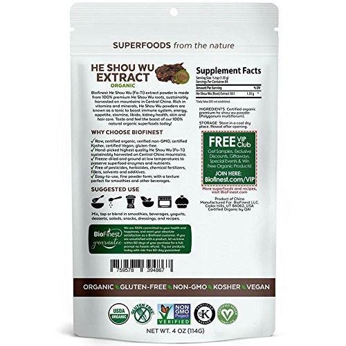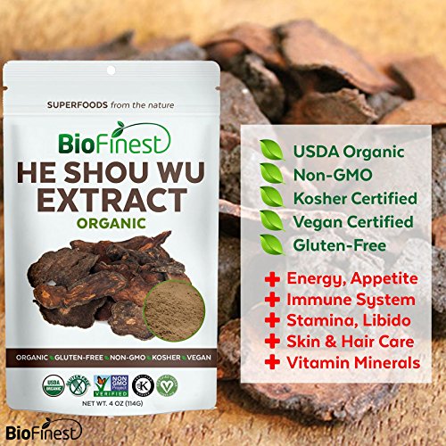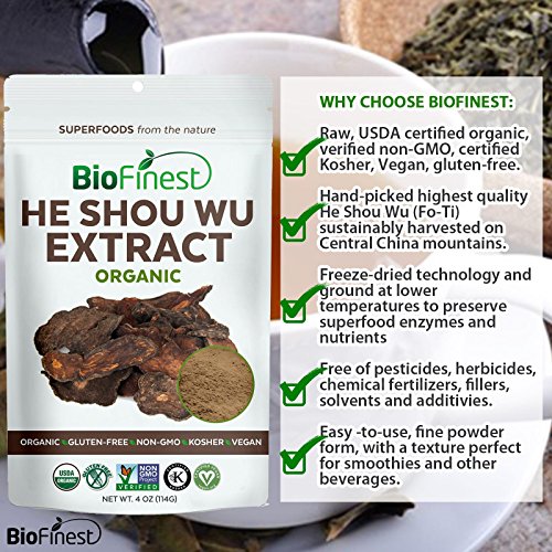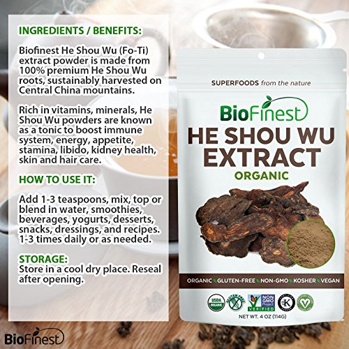 -. Title : Biofinest He Shou Wu (Fo-Ti) Extract Powder - 100% Freeze-Dried Superfood - USDA Certified Organic Kosher Vegan Raw Non-GMO - Stamina Immunity Energy Tonic - For Smoothie Beverage Blend (4 oz)