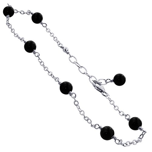 -. Title : Gem Avenue Sterling Silver Black Onyx Simulated Stone Adjustable Anklet