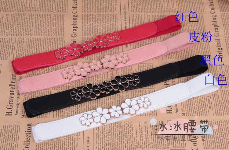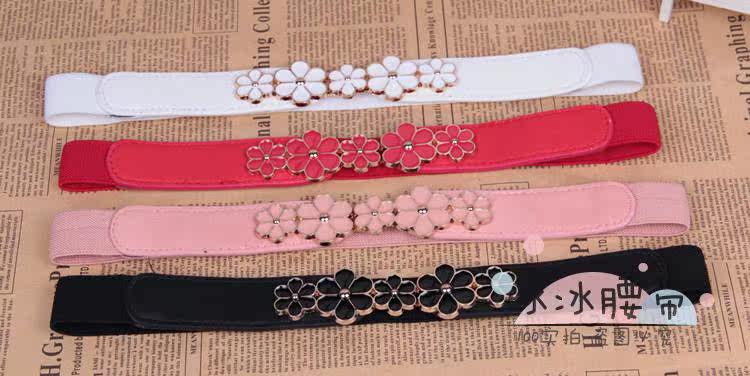 Beautiful series of solid gold-rimmed small daisy flowers sweet lady elastic waist belt female seal