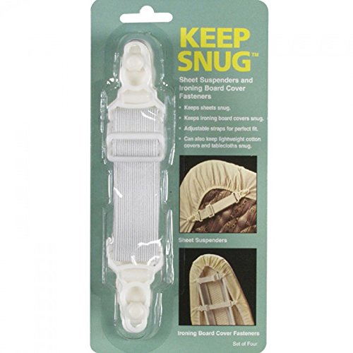 -. Binding : Kitchen -. Brand : Keep Snug -. Color : White -. EAN : 0779663107721 -. Feature : 4 piece set of adjustable sheet suspenders / Keeps your Sheet, ironing board cover or tablecloth in place / Quality long lasting to keep your sheet snug and neatly in place -. PackageQuantity : 4 -. ProductGroup : Home -. ProductTypeName : HOME -. Size : Adjustable -. Title : Sheet and ironing board fastener Pack of 4 -. UPC : 779663107721