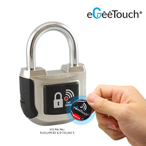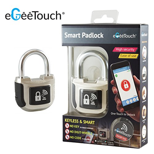 -. Title : eGeeTouch Smart Padlock 2nd Gen UPGRADED with Patented DUAL Bluetooth + NFC Technologies for Smartphones & Watch