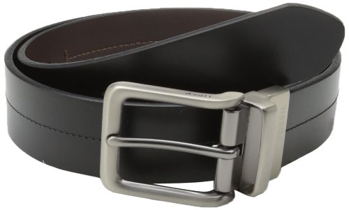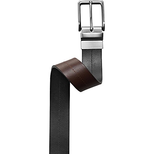 Reversible black-to-brown leather belt featuring center stitching and matte nickel hardware with logo Width: 1.5" Brand : Fossil Item model num : MB1273 MPN(PartNumber) : MB1273001 EAN : 0762346244615
