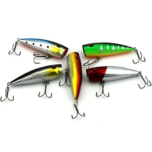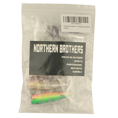 -. Feature : Quantity:5pcs; Length:Approx. 7cm; Weight:9g/piece; Color:as the picture shown / Diving depth:Top water ; Hook : 6# bend treble hook ,Sharp & High Penetration Hooks / Very attractive, simple, and effective,3D eyes make it a powerful catching tool / A tackle box must,the baits work great they swim and pop well.Wonderful quality and color to them. They feel very sturdy / OUR GUARANTEE: If for any reason you are not 100% satisfied with your Northern Brothers Fishing Lure Hooks, please let us know and we will immediately refund your purchase P.R.Ice - no questions asked