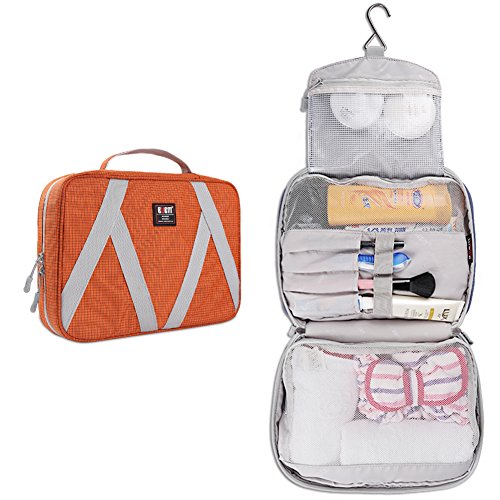 BUBM Travel Toiletry Bag, Hanging Toiletry Cosmetic Bag, Travel Toiletry Organizer for Men and Women, Orange