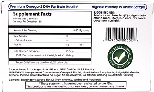 Pharmaceutical Grade Triglyceride DHA Fish Oil for Healthy Brain Function. DHA, or docosahexaenoic acid, is a key omega-3 fatty acid that makes up a sizable percentage of your overall brain tissue. Just as calcium is essential for building strong bones, DHA helps brain cells develop and function properly throughout life. Further, DHA has been shown to increase the blood flow to your brain, which is also helpful for overall brain health*. Neurons in the brain process and transmit electrical and chemical "messages" that enable our bodies to function normally. These neurons are rich in omega-3 DHA; therefore, a diet low in DHA may deprive the nervous system of a critical nutrient for healthy brain function*.Feature