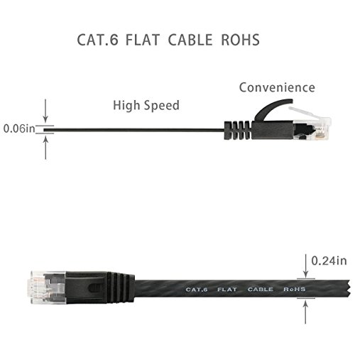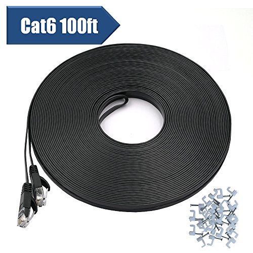 Cat 6 Ethernet Cable 100 ft Black , Flat Internet Network Cable, Cat 6 Computer Cable With Snagless Rj45 Connectors – 100 feet Black (30.48 Meters)