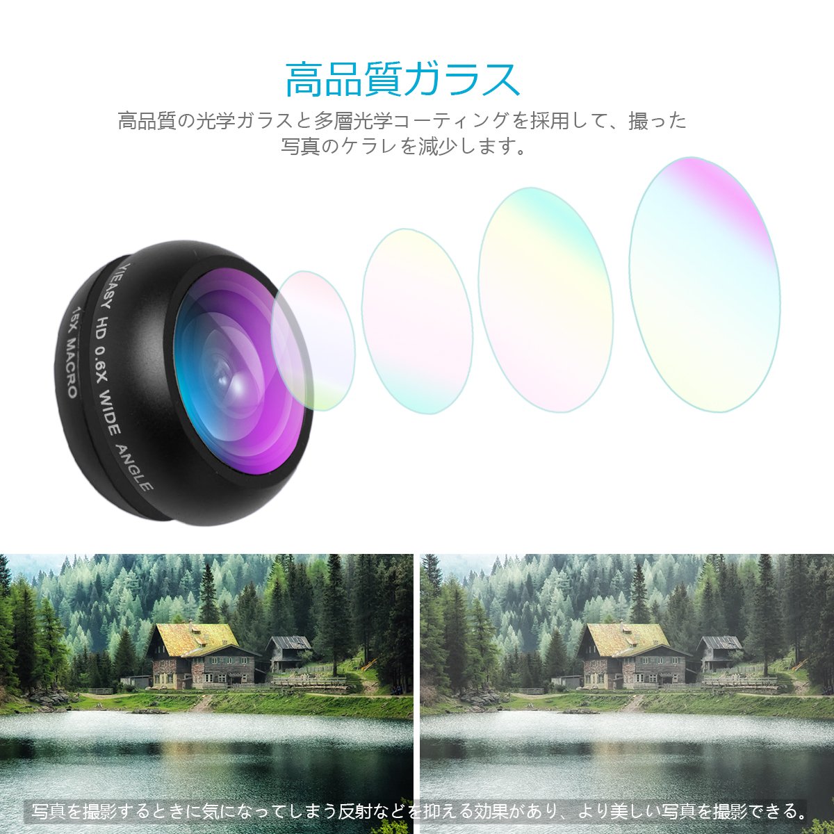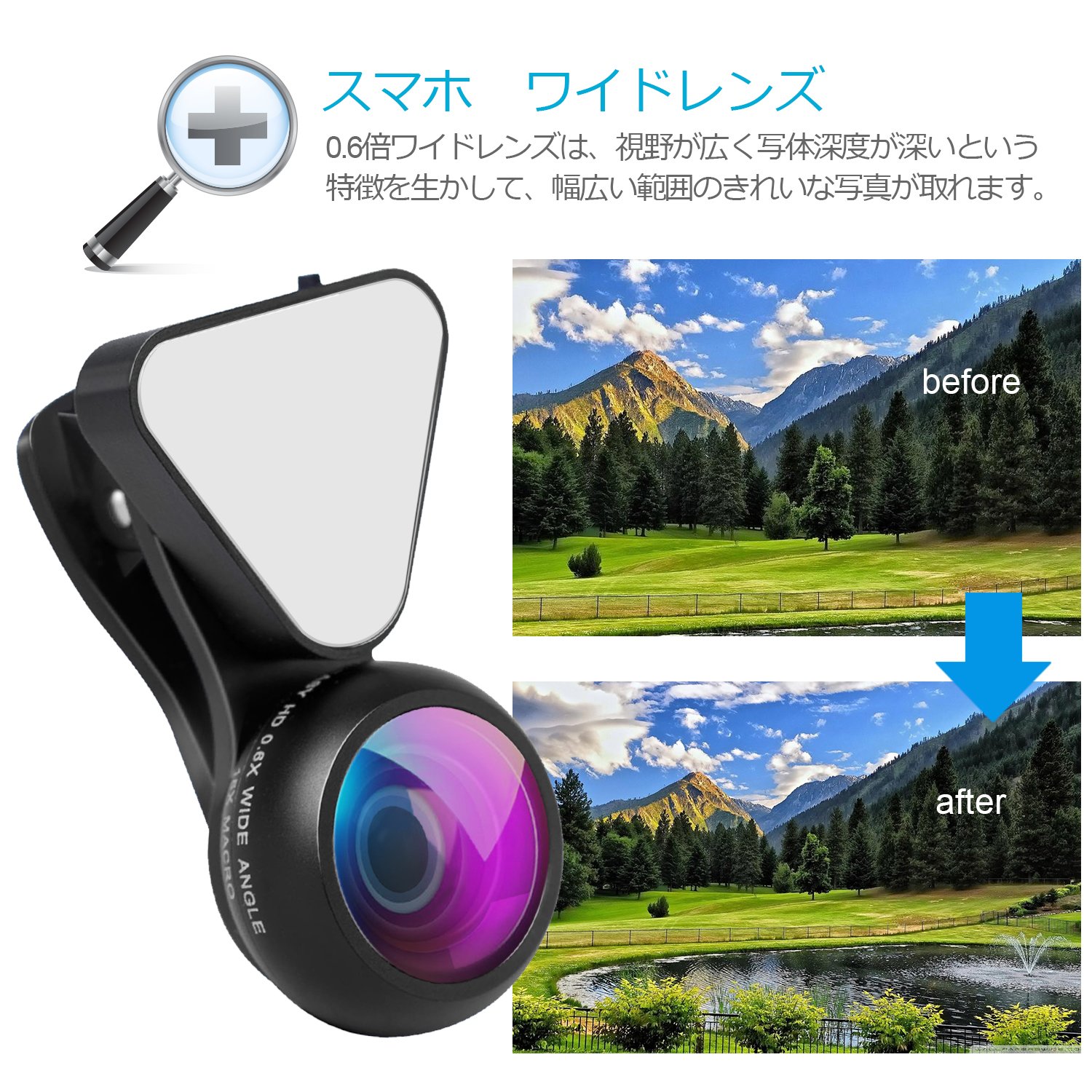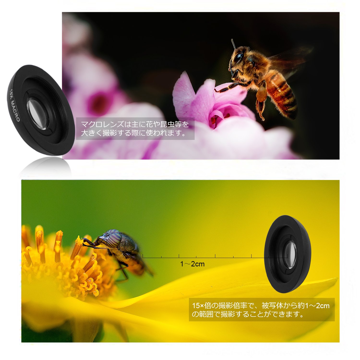 0.6 times wide angle lens, 15 times macro lens.
