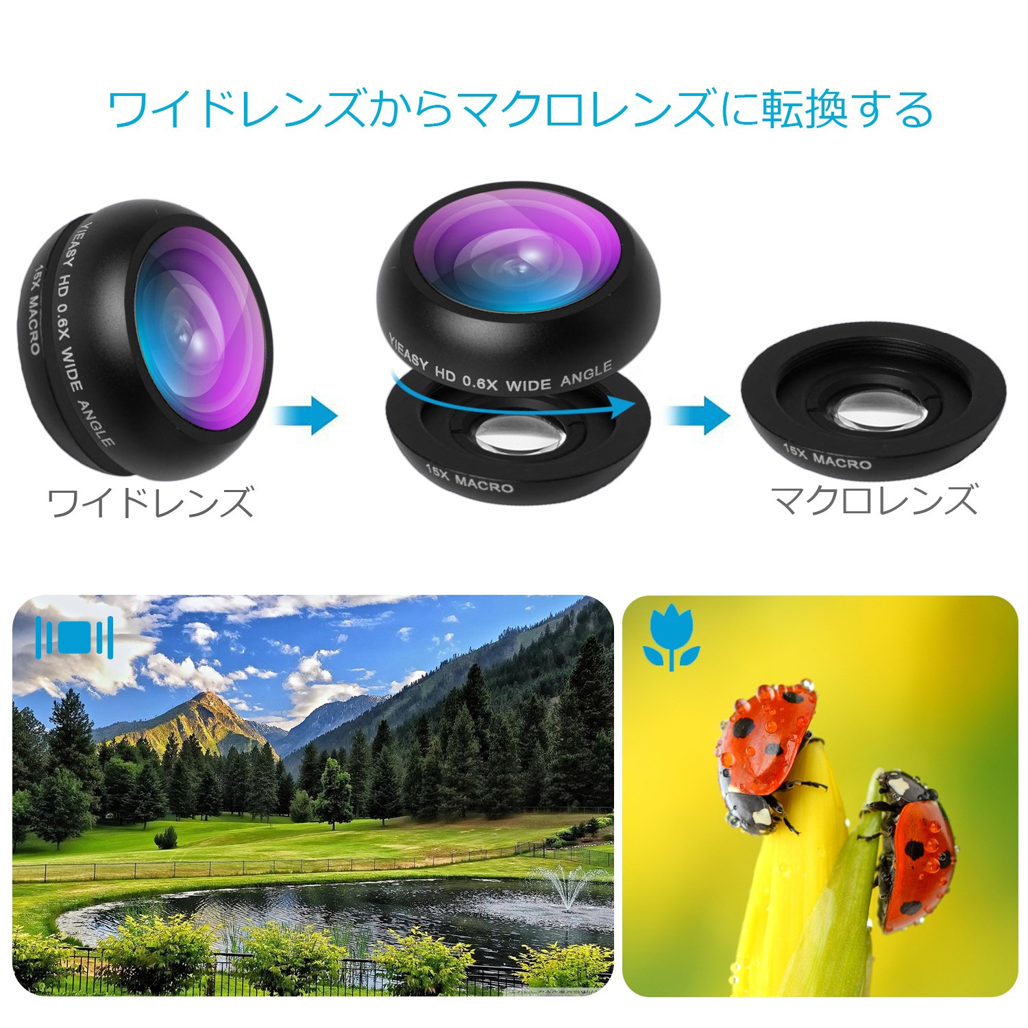 When it is removed by turning the wide lens, it becomes a macro lens, it can be used easily.