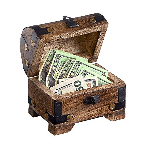 MONEY TREASURE CHEST: Lovely and rustic treasure chest made of wood in pirate style, with nostalgic metal details. The perfect 50th birthday gift.